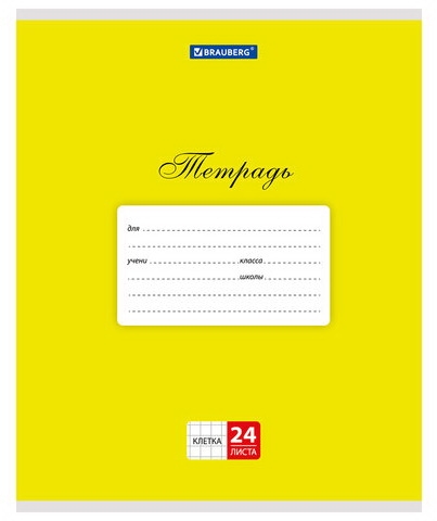 Тетрадь 24 л. BRAUBERG "Классика", клетка,, мелованный .картон, желтая